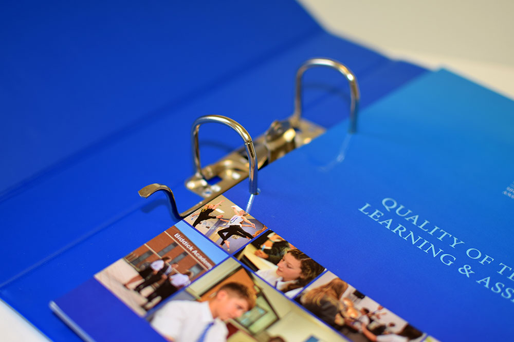 Personalised A5 Ring Binder with encapsulated full colour cover with open spine to take insert. Multi-page inner printed full colour on ‘tear-proof’ paper.
