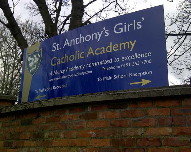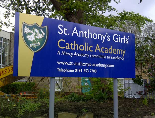 This was a neat little project for an all girls school in Sunderland. Project consisted of pole and plan flat panel sign, curved flat panel sign with steel frame and various miscellaneous signs around the school.
